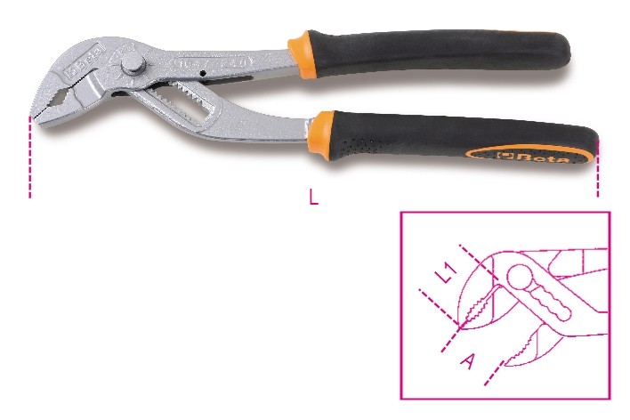 Bent extra long knurled nose pliers, 90°, for special operations, slip-proof double layer PVC coated handles