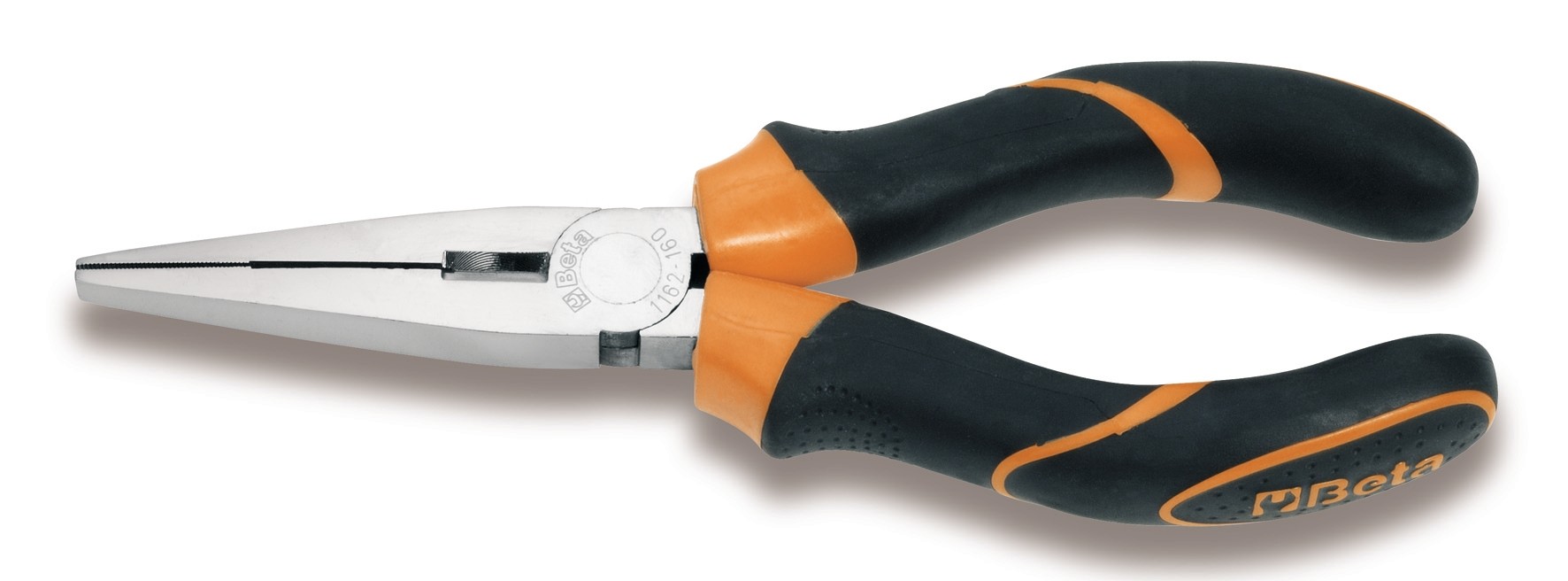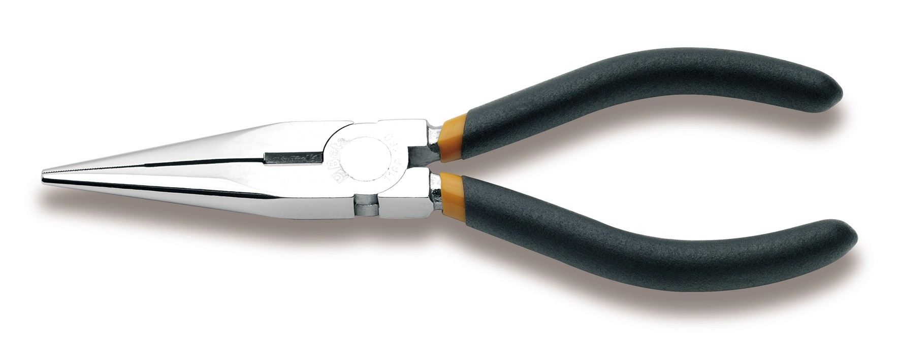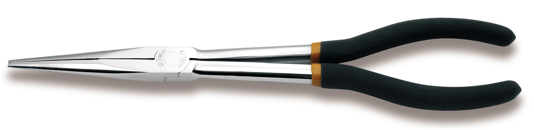 Extra-long knurled nose pliers, slip-proof double layer PVC coated handles, chrome-plated