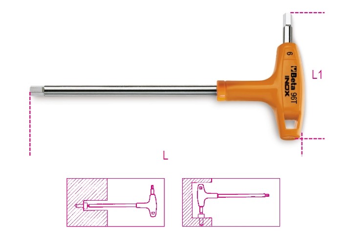 96T INOX Offset hexagon key wrenches, with high-torque handles, made of stainless steel