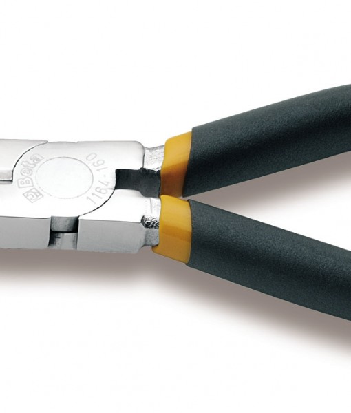 Extra long bent flat knurled nose pliers, slip-proof double layer PVC coated handles