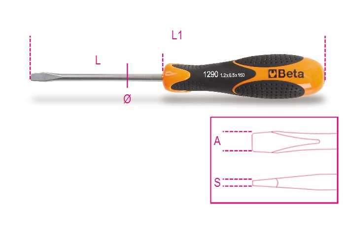1290INOX Screwdrivers for slotted head screws made of stainless steel