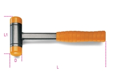 Dead-blow hammers, with interchangeable plastic faces, steel shafts.