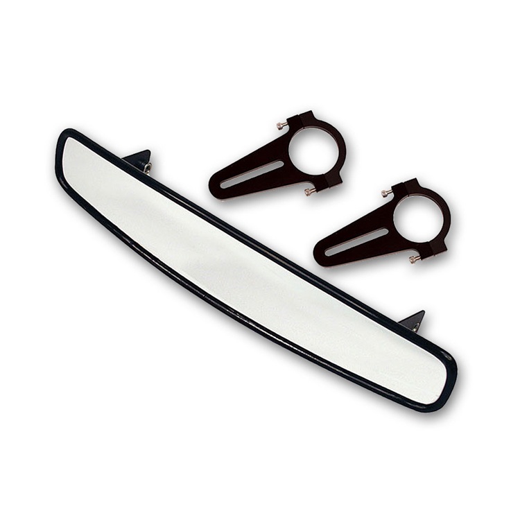 17″ mirror comes with 1/2″ – 2 1/2″ range bolt-on brackets. Brackets available to fit 1 3/4″ or 1 1/2″ roll bars. Please select above when ordering.