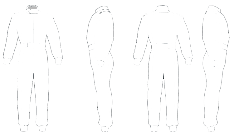 These custom suits are made of 2- layer, with a shiny Nomex outer layer and a knitted Nomex inner layer. They are SFI/5 approved. They feature Knitted nomex across the back and a 360 degree knitted Nomex around the arms.