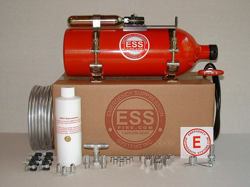 This is a 2-zone Fire System and offers protection for 2 zones in case of a fire. Suggested zones would be the engine and driver. This system comes with 3 nozzles, 2 nozzles for the engine, one nozzle for the driver. If you are looking for a 3-zone system to cover the engine, driver and fuel cell, try the ESS 5.0 liter system. ESS is designed for racers by racers and meets competition approvals of SCCA, NASA, and other sanctioning bodies. This system comes with 3 nozzles, a bulkhead tee, manual pull cable, and all brackets, tubing and hardware to complete an installation.