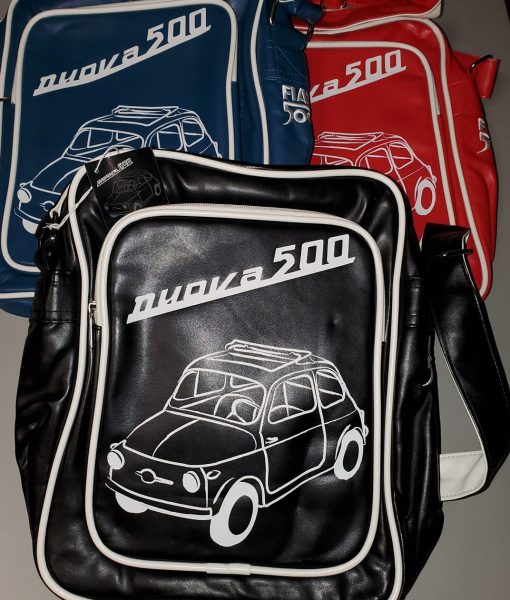 Eco-leather shoulder bag with a large front pocket and several internal compartments. Available in black, blue or red. $34.95 shipped via USPS ground.