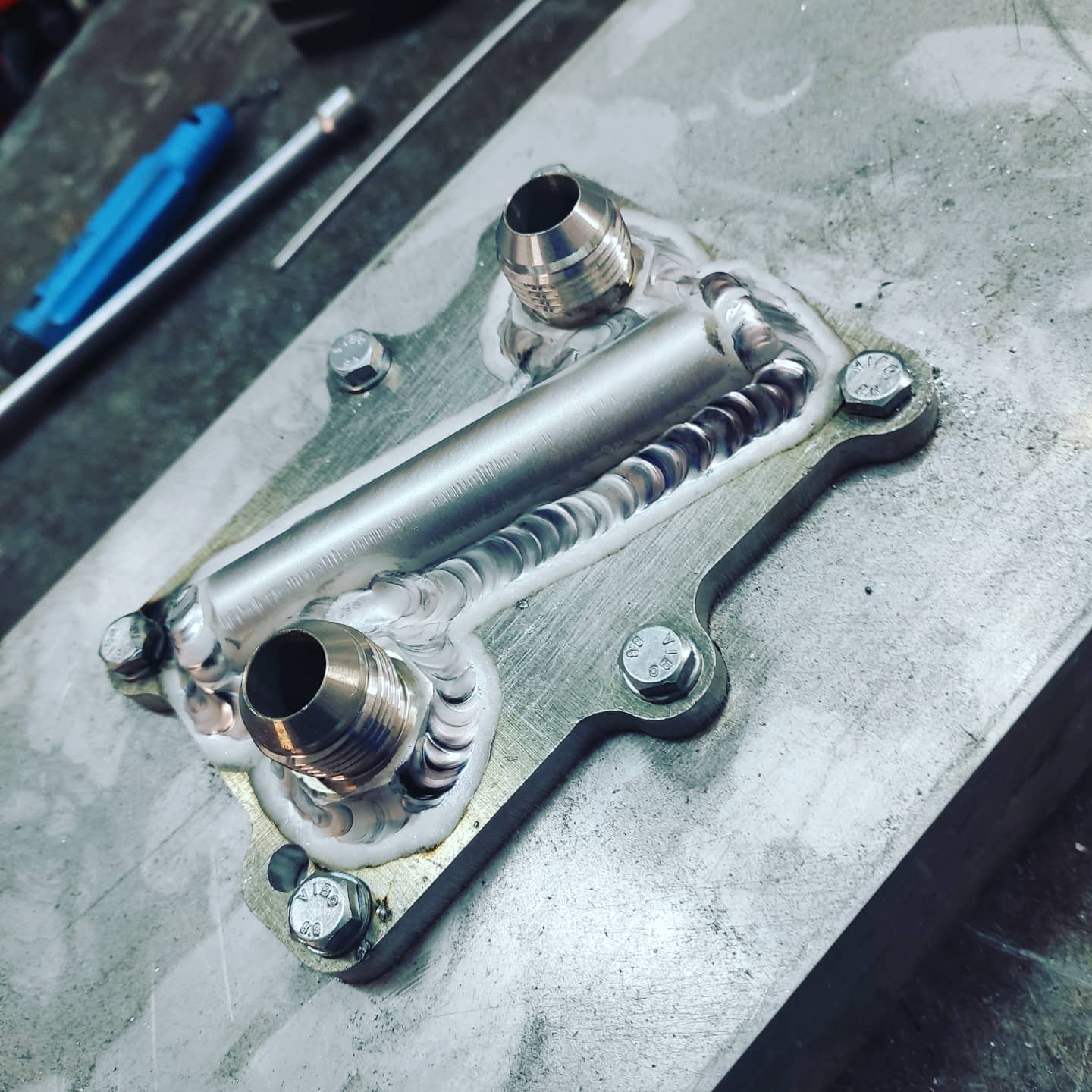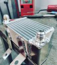 ORRA RACING Oil Cooler Kit for Abarth 500 1.4 liter motor. Comes complete with cooler, braided lines, fittings and cover plate. You must add one liter of oil when using this kit so you will need a total of 5 liters.